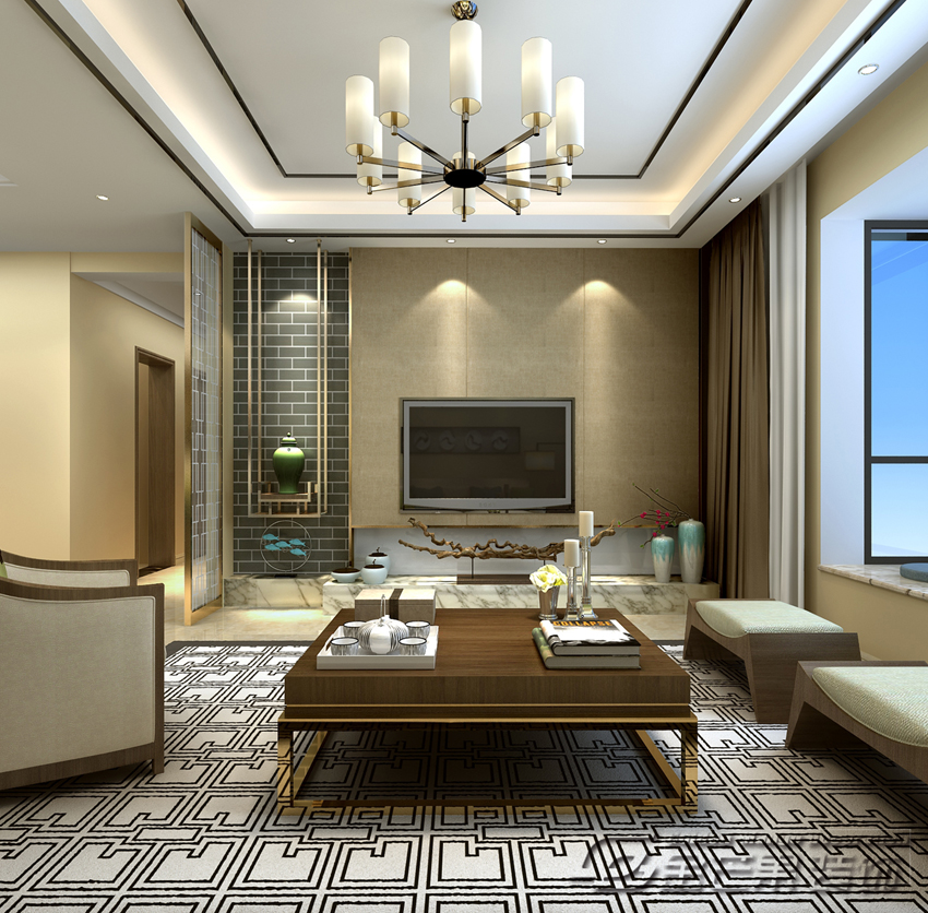 惠景園135㎡ 簡中風格 客廳效果圖 金芒果裝飾設(shè)計師 出品