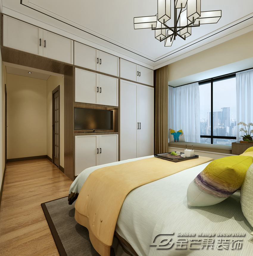 惠景園135㎡ 簡中風格 臥室效果圖 金芒果裝飾設(shè)計師 出品