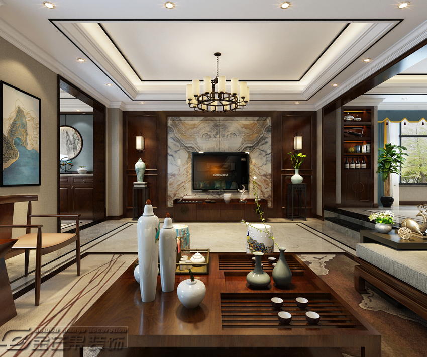 公務員小區260㎡ 簡中風格 茶室效果圖 金芒果裝飾設計師:劉峰 出品