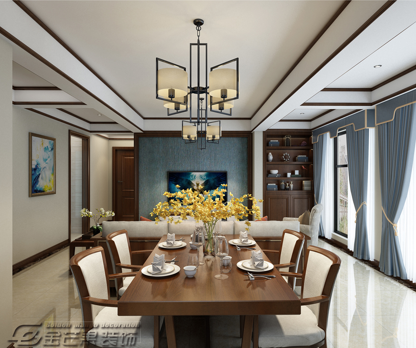春江明月125㎡  簡中風格    餐廳效果圖 金芒果裝飾設計師:劉峰    出品