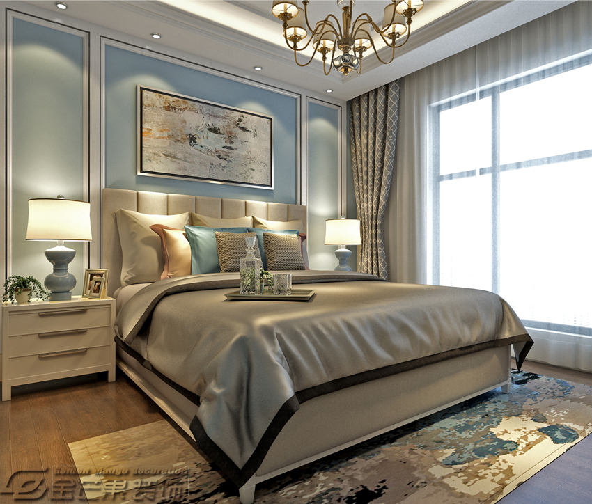 春江明月125㎡  簡中風格    臥室效果圖 金芒果裝飾設計師:劉峰    出品
