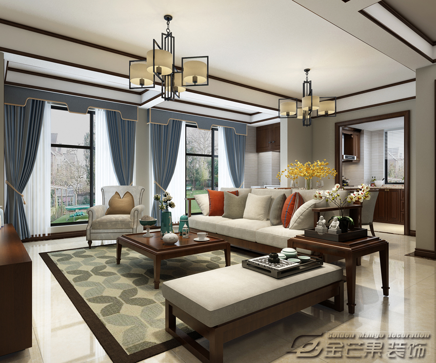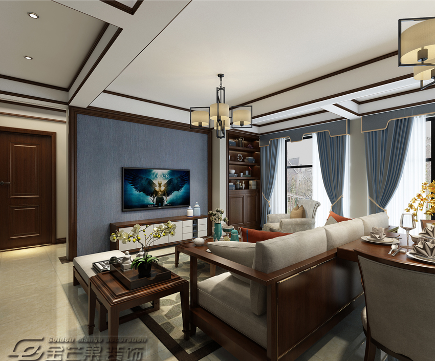 春江明月125㎡  簡中風格    客廳效果圖 金芒果裝飾設計師:劉峰    出品
