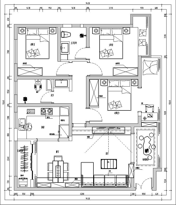 水岸青城109㎡現代風格裝修效果圖--李才成