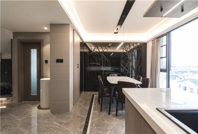 本案是格調、品質的現代風格裝修,以充滿品質感的灰黑色為主色調,以時尚、精雅的設計筆觸,讓空間充滿現代家居格調和品質感,以及家的舒適和溫度。