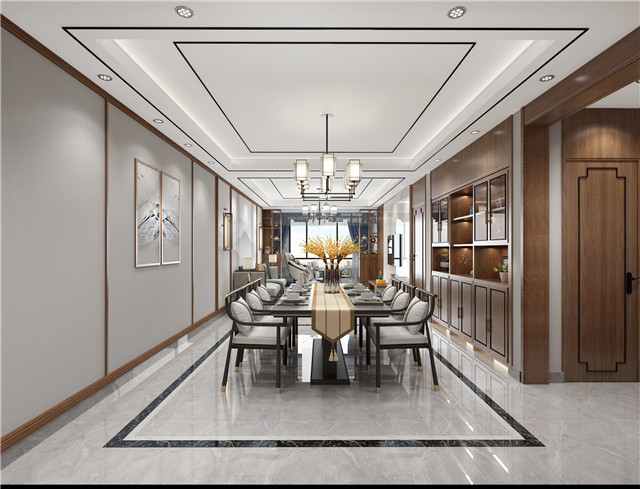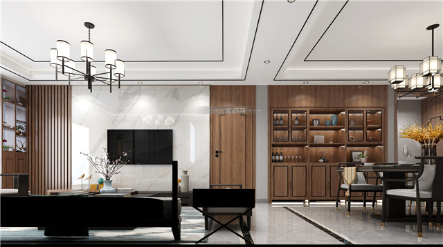 大量木質元素,凸顯中式的歷史文化底蘊,中式的一些花紋,讓格調更加彰顯。現代元素大理石和中式線條、造型、燈飾結合,具有現代的時尚,又不失中式的韻味。