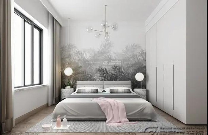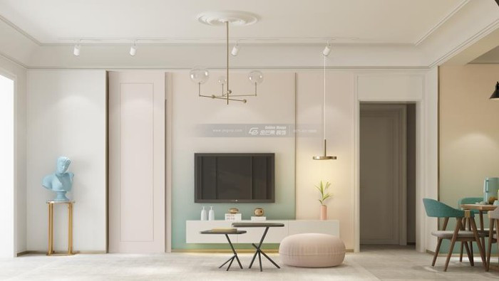 墻上的裝飾畫營造清新、簡明的感覺,燈飾營造空靈、夢幻之感,似墜落的星光,裝點了少女的夢。