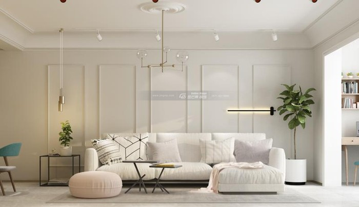 沙發背景墻,設計簡潔卻讓整體空間層次感立現。純白的沙發喚醒內心的溫柔,淺淺的顏色守護內心的純粹與安然。綠植的點綴讓空間呈現一種自然本真之美。窗明幾凈,連空氣都是自由的。