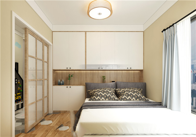 通透的推拉門設(shè)計(jì)不僅方便引入自然光線,還消弭了小空間給人的壓迫感。小小的臥室空間如何保持整潔呢?超大的床頭儲(chǔ)物設(shè)計(jì)是你最好的選擇!