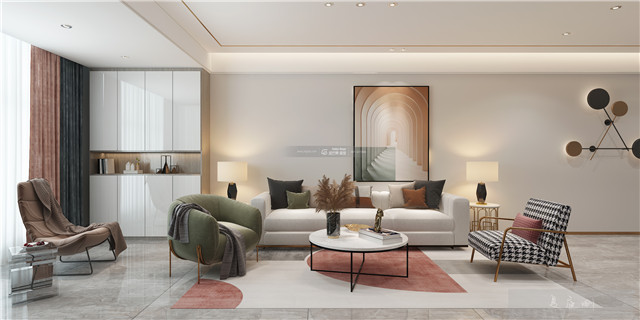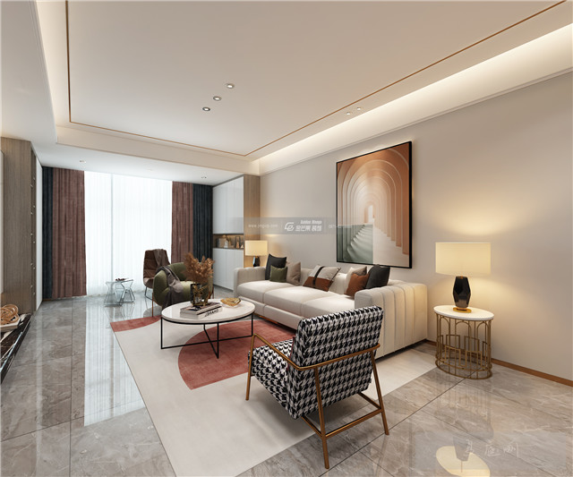 精致的金屬元素,是輕奢風格品位的展現,渲染出精致華麗感。千鳥格單椅,帶來文藝氣息。