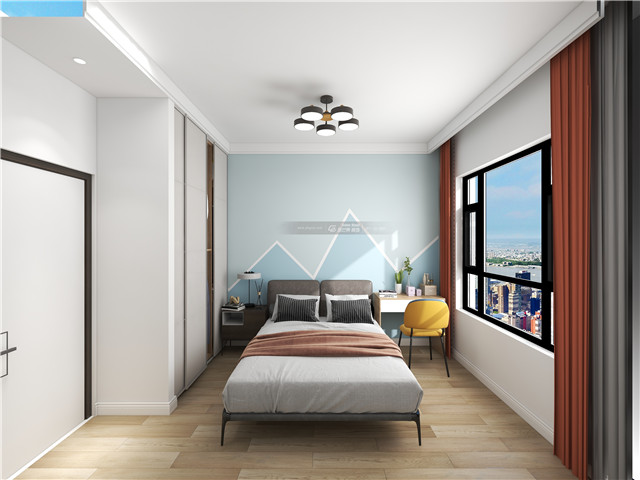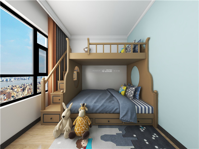線條和顏色打造滿溢的童趣,和窗外絢麗充分融匯,用所有美好的詞匯將房間填滿,明媚、純真、活潑……快樂色彩,無(wú)憂童年。