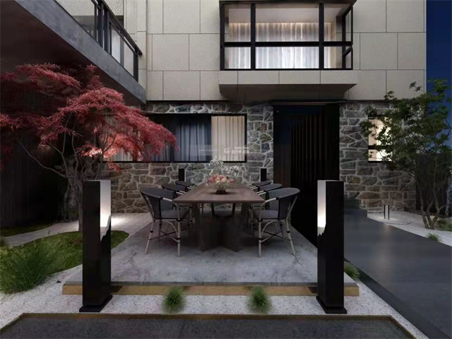 室外地面線條,花紋的運用配上精美設計的餐桌, 再加之窗簾軟飾的精心設計和院內綠植美化,漂亮又有品。