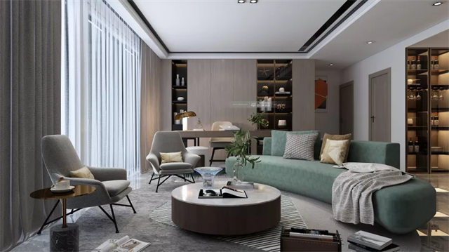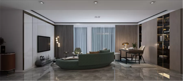 簡潔利落,低調沉穩,當夜間的氛圍燈開啟,窗簾的啟動,業主有了時尚靜謐空間。
