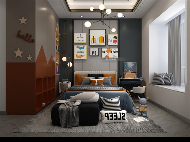 臥室設計新穎獨特,給寶寶大膽的想象空間,溫馨而舒適。
