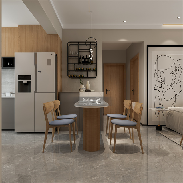 在整體風(fēng)格走向上,加入穩(wěn)重的灰色,不同深淺不同材質(zhì),既有碰撞區(qū)分又協(xié)調(diào)統(tǒng)一,空間感更好。