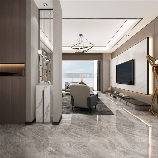 大理石電視背景墻,背后安裝燈帶,簡約而時尚。