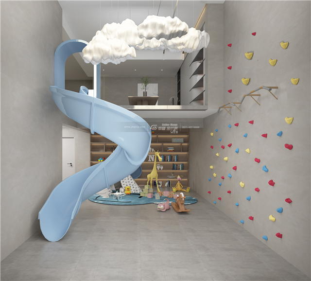 大膽的設計,把游樂場搬到家里,滿足孩子的娛樂需求。鮮艷的顏色,獨特的造型,休閑娛樂之余,增加現代家居里的時尚感,也為家里增添了一道靚麗的風景線。