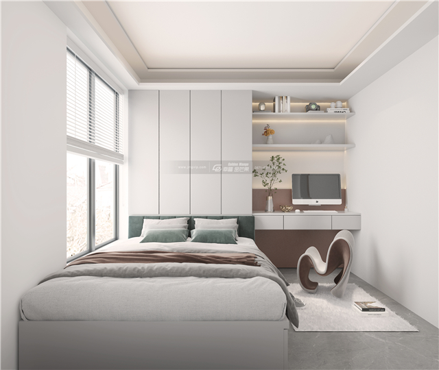 清淺的顏色,一切都是輕輕柔柔,讓身心無限的放松,然后沉入睡眠。整體的淺灰色初看很高級,仔細看能感受到材質、線條之間細膩的轉換,衣柜柜門高級感滿溢的同時營造視覺的延伸感。