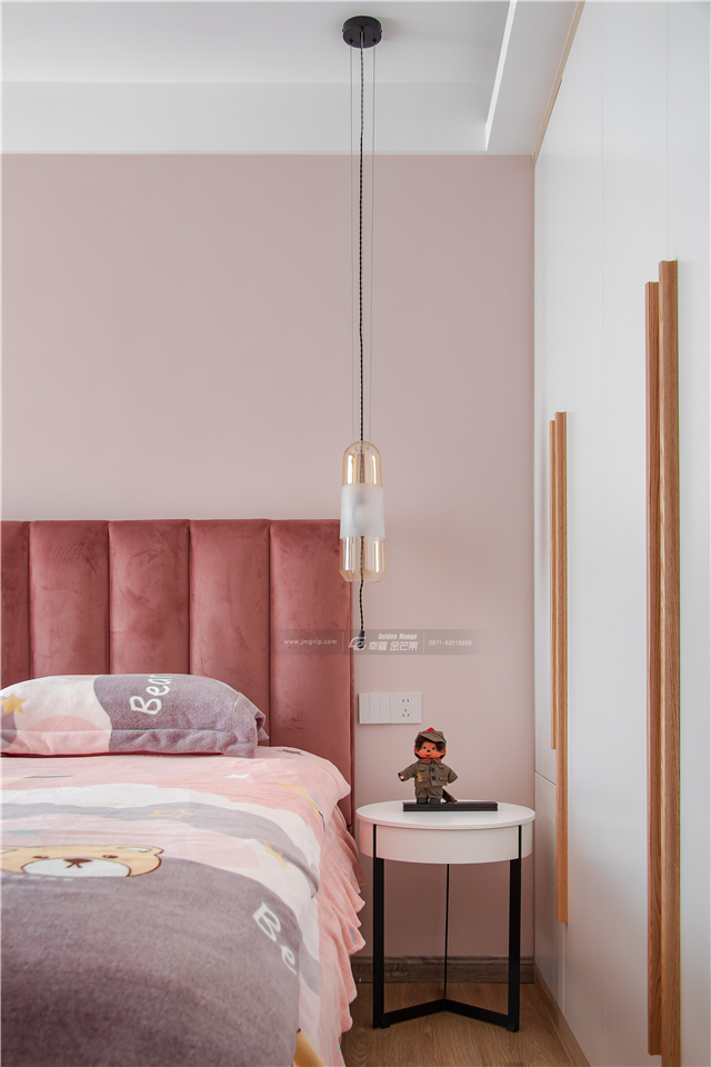 粉嫩的兒童房是孩子的樂(lè)園,編制一個(gè)童話故事里的世界。深淺不一的粉色甜美溫馨,活潑靚麗,描繪著絢麗多姿的糖果般的夢(mèng)幻花園。