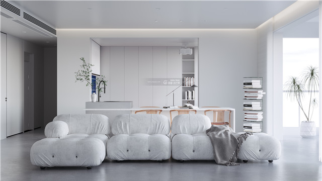 純純的白色為基調,簡凈大方,拋卻一切繁雜,靜靜感受生活的呼吸感。通透明亮,吸納光源,釋放自由,身心變得愈加輕盈。白色沙發,符合簡凈的氛圍,通透干凈。