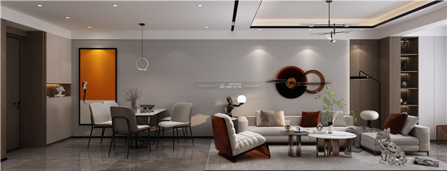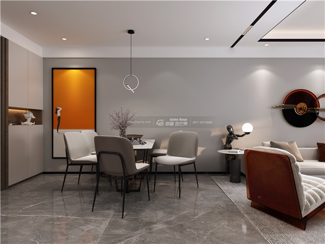 整體以灰色調(diào)為主,彰顯簡約的家居格調(diào),營造安靜安心的家具氛圍。運用一些亮色的家具、裝飾,顏色搭配,營造活潑的空間氛圍。整體沉穩(wěn)又有家居格調(diào)。
