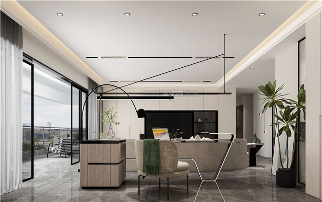 不規則沙發,突破空間的桎梏,讓空間變得更加靈動。彰顯自由和自在。 整體潔凈、利落的白色調,心情也變得干凈、簡單起來,放下嘈雜,放松身心。寬大的落地窗,空間變得更加通透。窗外繁花似錦,窗內舒逸生活。