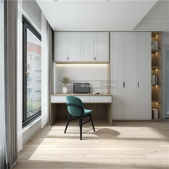 擁有貴族般的至高待遇,舉手投足都變得優雅起來。吊頂上的雕花設計,優雅而不失高貴的墨綠色搭配,華麗的斗柜,品質感滿溢的木地板,處處可見用心,華貴的氣質下,藏不住的格調生活,蔓延全屋的歐式浪漫情調。