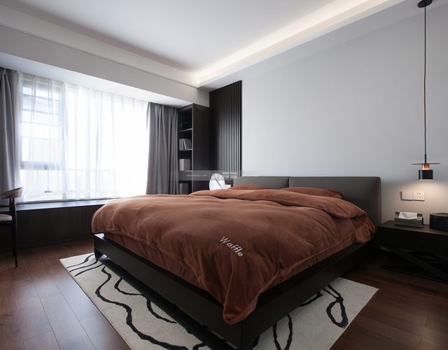現代簡約風格的設計主要以體現時代特征為主,一切從功能性出發。對于室內的墻面、地面和頂棚都采用了簡潔的設計,采用質感舒適、觸感豐富的材料讓整體臥室在裝修上擁有著很大的實用性。在工藝品的選擇上,也是采用簡潔線條感的設計形式的工藝品。