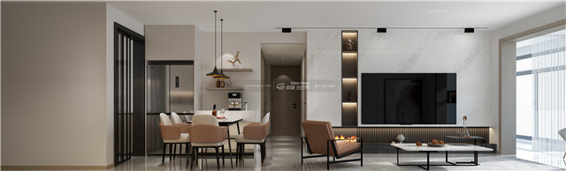 摒棄繁雜的電視柜,厚重的茶幾,生活化繁為簡。大理石電視背景墻,因為木質柜體和暖光源的加入變得愈加有質感。或陷入沙發,或坐臥地毯,房屋本身散發的安逸感,足以在匆忙的歲月中,給予心靈最溫柔的撫慰。
