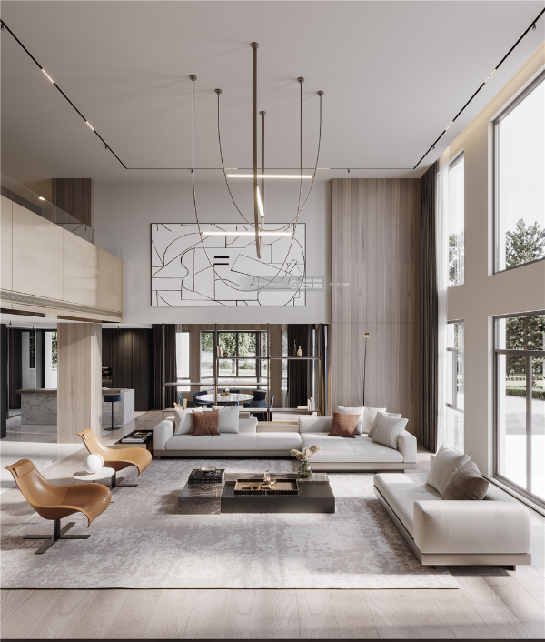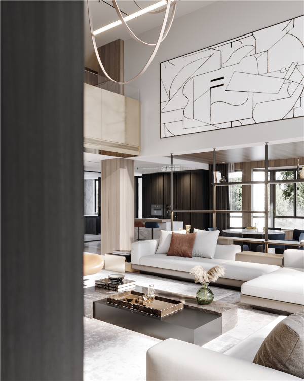 多種線型在客廳中完美組合,形成包容共生的和諧區(qū)域。