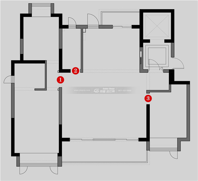 ④、1、2、3處做隱形門設(shè)計(jì),客廳整體感、視覺(jué)效果更佳。