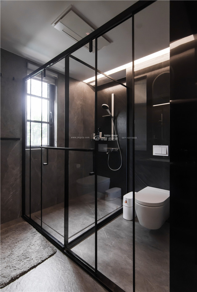 玻璃移門做半開(kāi)放式衛(wèi)生間的設(shè)計(jì),空間私密性更好。通體L形大門套,整體性在細(xì)節(jié)處理上非常妙。