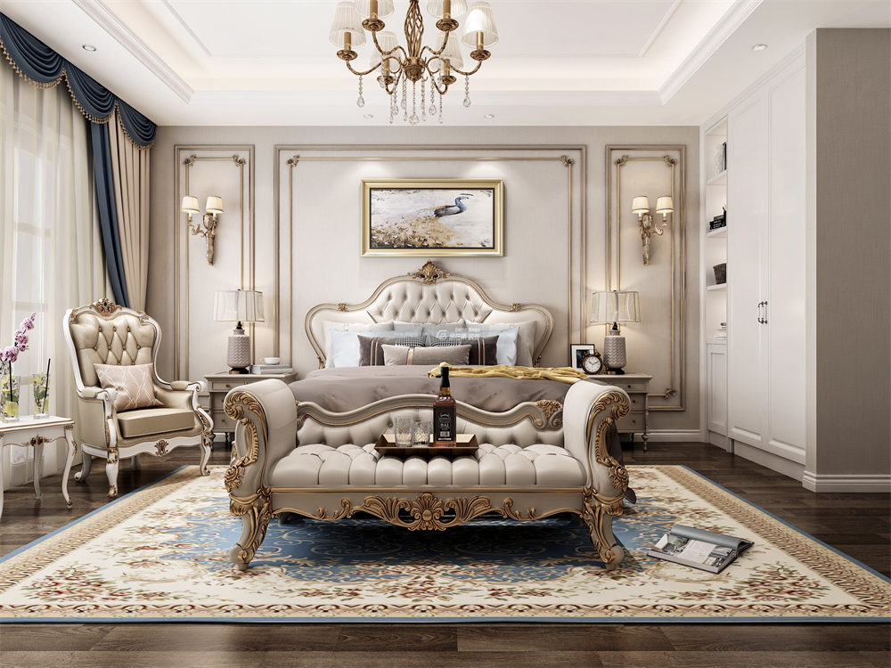美觀的線條、精益求精的細節處理,使得空間質感和諧統一,地磚、地毯圖案皆為歐式經典花紋,還原歐式濃濃風韻,整個空間大氣磅礴、氣場十足!