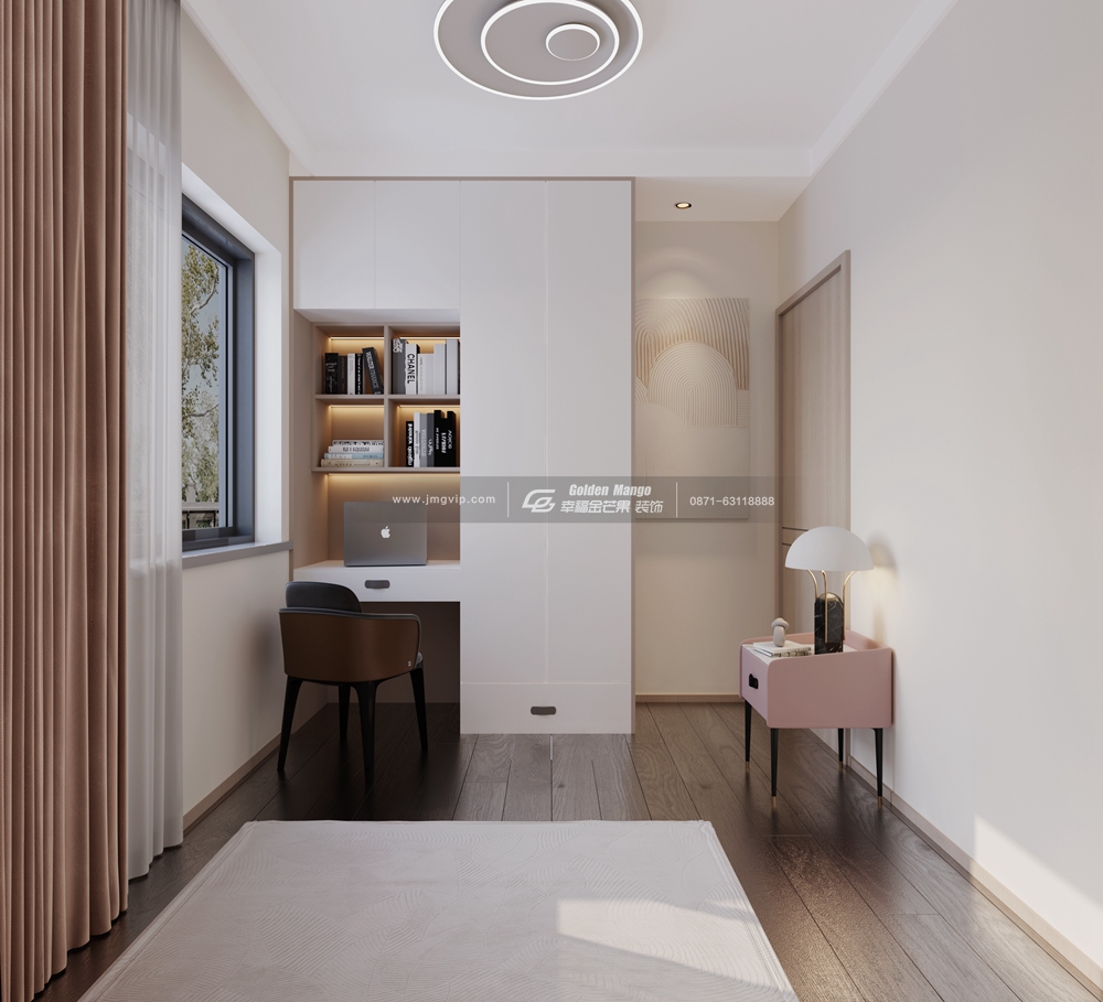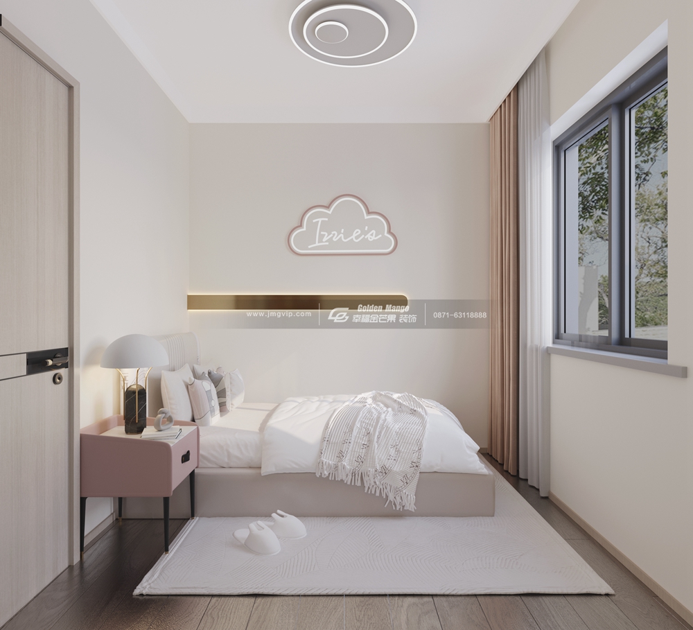 女孩房以低飽和度的粉色和白色為主調(diào),粉色柔軟舒適的小床和墻面簡(jiǎn)單的氛圍感云朵,讓孩子心里更有安全舒適感,每晚都能一夜好夢(mèng);窗戶(hù)右側(cè)做展示柜和衣柜一體設(shè)計(jì),獨(dú)立的學(xué)習(xí)空間,節(jié)省空間又方便實(shí)用。