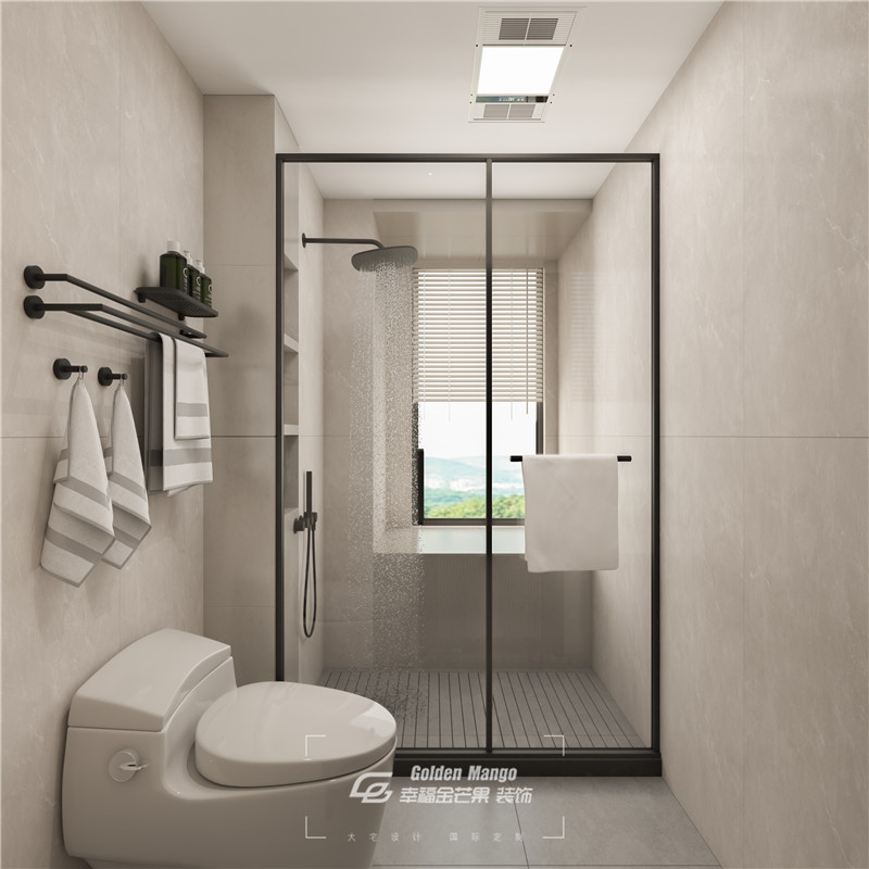 浴室空間依舊延續(xù)溫潤的基調(diào),至頂?shù)拇u石簡約利落,柔和的色調(diào)消解了材料本身的冰冷,轉(zhuǎn)而給人更顯澄澈的內(nèi)在感受。
