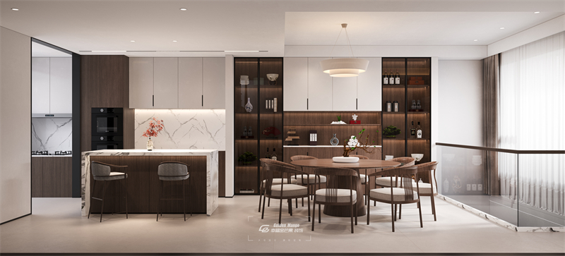 走進這座新中式宅邸,仿佛踏入一個寧靜的世外桃源,美在韻味,美在材質。