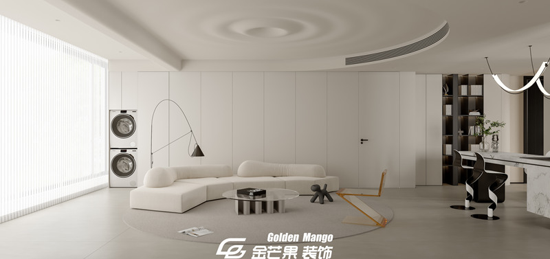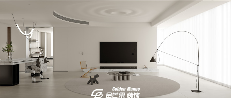 n 作為家的 “顏值 C 位”,客廳的設計直接定下了整套房子的氣質(zhì)。金芒果的設計師以 “減法思維” 為核心,大面積的淺灰色地磚搭配米白色布藝沙發(fā),如同給空間鋪就了一張干凈的畫布。最妙的是光影的運用—— 整面墻的落地窗沒有做繁復的窗簾,而是選擇了極簡的百葉簾,正午時分,陽光透過葉片在地面切割出斑駁的光影,傍晚則讓落日的暖黃溫柔包裹整個空間。