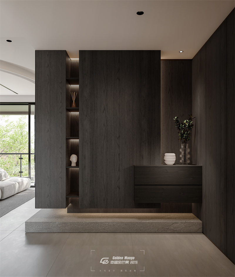 整體以深木色為主色調,營造出沉穩、高級且富有質感的氛圍。
