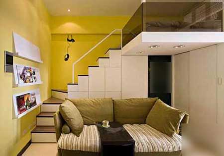 在復式結構的居室中,只要保證樓梯承重,樓梯下面的空間也應該充分利用起來。可以考慮在樓梯旁做一個吧臺或者工作區,這樣,樓梯下面的空間就會成為儲藏葡萄酒、盛放酒具器皿的好地方,或者可以騰出工作、看書的區域了。