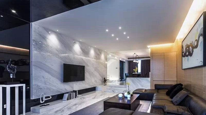 用鋪板材的方法,墻面整體都鋪上板材,外面貼上裝飾面板,高貴而奢華??梢赃x用與地板相近的材料,減少違和感。還有一種雖是用密度板等板材整面鋪墻,但上面再刷上白色乳膠漆,從外表上看不出是用板材裝修的,它是利用密度板切割方便、邊緣整齊平直的特點,通過板材的拼接來做直線、坑槽等造型,這樣處理的墻面既平整、造型細致,又避免了大量使用板材而帶來的擁擠感。配合上燈光就可以呈現(xiàn)出不同的效果,有多種的種類選擇。