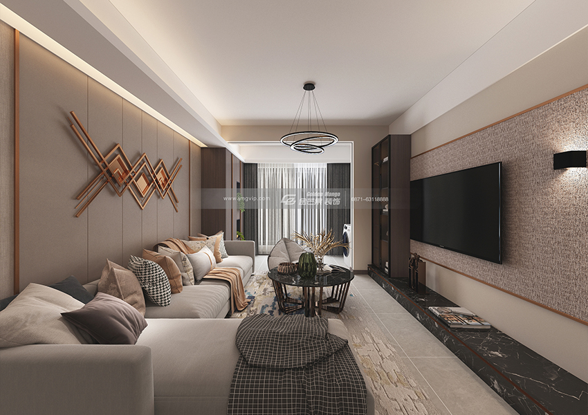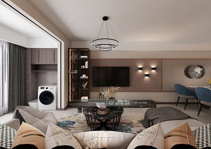 客廳的設(shè)計布局沒有多余的東西。舒適的沙發(fā)加上大屏電視,在會客時舒心交談,關(guān)上燈則是影院級的享受。背景墻是中式風(fēng)格的體現(xiàn)。燈帶散發(fā)的光芒則渲染了溫馨、溫暖的氣氛。