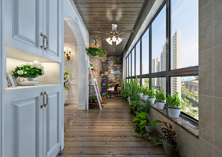 陽臺的話主要是休閑、生活,用吸頂燈會比較合適,亮度也要滿足日常生活的需要,可在兩邊搭配上壁燈,這個也會更加有格調。
