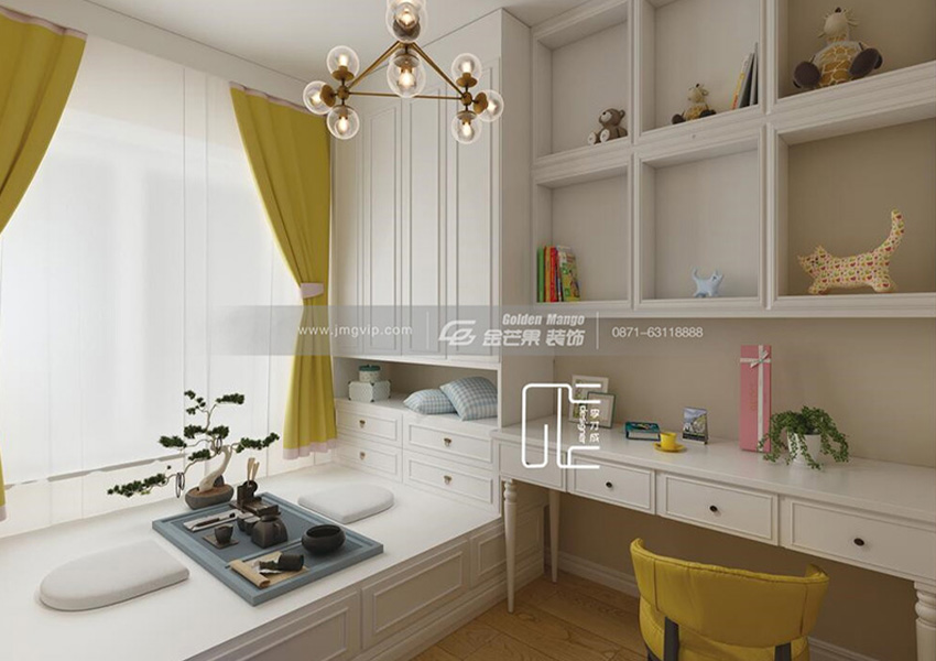 氣質(zhì)滿滿的女兒房,嫩嫩的粉裝點著房間,也裝點著少女心。吊燈美感十足。