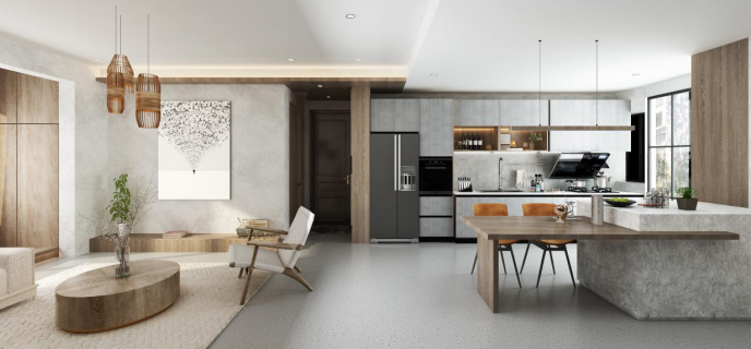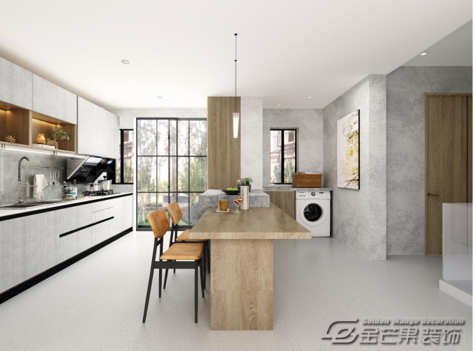 客廳、餐廳、廚房三者區隔不明顯,增加了空間的靈動性,可以在做菜的同時招待客人,使空間看上去并不死板,互動之間增加房間的煙火氣,使客人在做客時容易感受到主人的熱情和真摯。