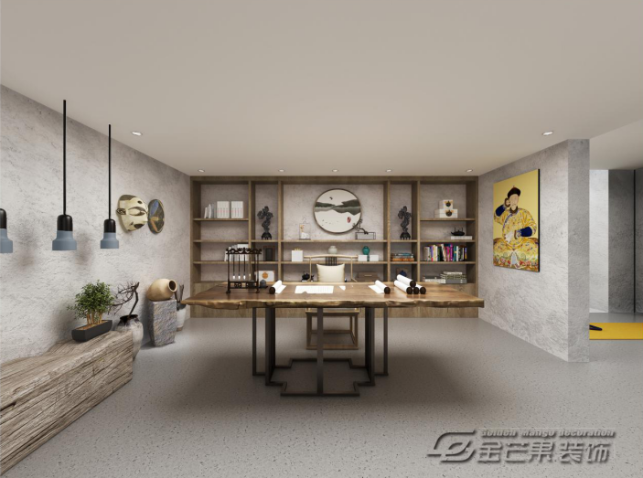 書房繼續沿用很多原木材質的家裝,在具有濃烈中國風元素的書桌、筆架、畫圈、茶壺的加持下,整個空間顯得大氣且典雅,頗有“遺世而獨立”的縹緲之感,一縷書香,一段韻味,回歸本真,樸實無華。