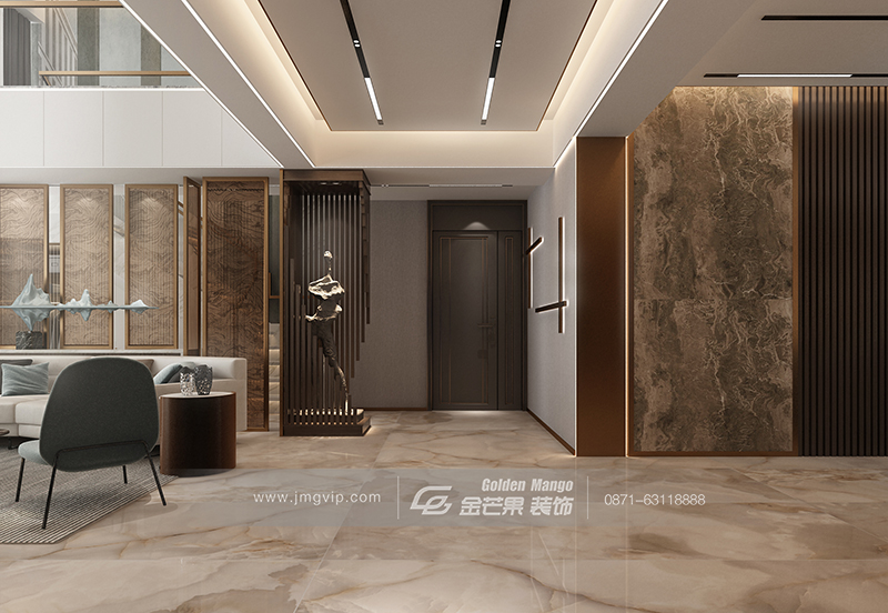 大量金屬色、金屬線條的運用,打造奢華的高級感。淺色為主,棕色為輔的色調,浪漫又優雅,高級又氣質,不免讓人聯想起港式電影里光線昏黃的鏡頭,光影閃爍間,韻味盡顯。