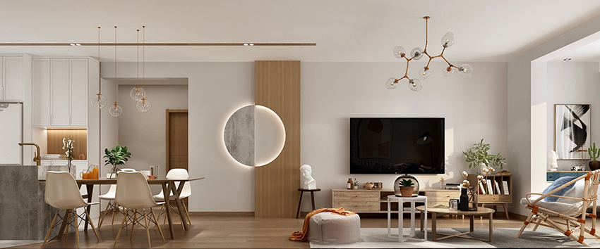 坐感舒適的布藝沙發,把自己揉入到溫柔的夢境里不用遐想其他,放松感受此刻的沉靜。原木色休閑椅和茶幾,空氣里都仿佛是空氣的清香。點綴清爽的綠植,把小森林藏進家里。