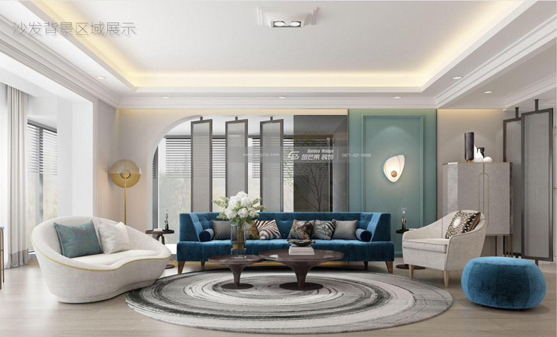 簡約現(xiàn)代電視背景墻,無需過多的修飾,精致質(zhì)感自現(xiàn)。沙發(fā)背景墻,花墻疏影,清風(fēng)徐來,吹拂簾布,為空間注入一絲漣漪。