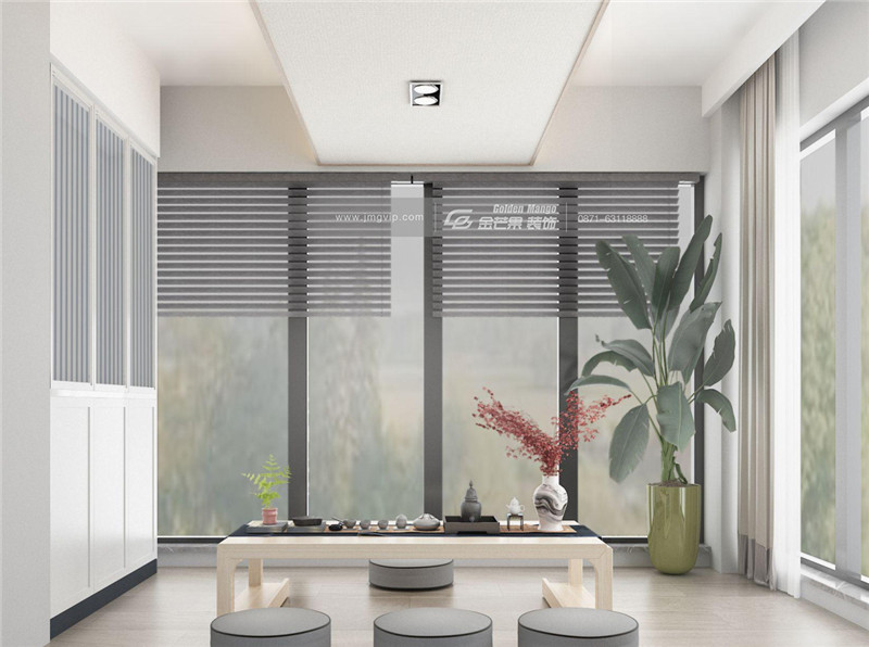幽靜雅致,溫婉怡然,忙碌的都市生活亟待精神生活的拯救,茶室一角為家居預(yù)留了這一份詩意。采光良好的落地玻璃通透靈動(dòng),綠植和紅色花束,氣質(zhì)之余為空間營造隨意慵懶的氛圍。