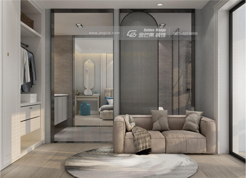 私密的臥室空間也是家居的重心,簡約的灰色調(diào)呈現(xiàn)低調(diào)的奢華,不規(guī)則的鏡子設(shè)計(jì)輕松打造空間藝術(shù)的一面,陶藝、雕塑、花束、個(gè)性簡約吊燈,抽象畫,材料的混搭令空間呈現(xiàn)一種個(gè)性質(zhì)感,細(xì)巧的小心思鋪陳開來,空間的細(xì)膩和精致也就隨之呈現(xiàn)。