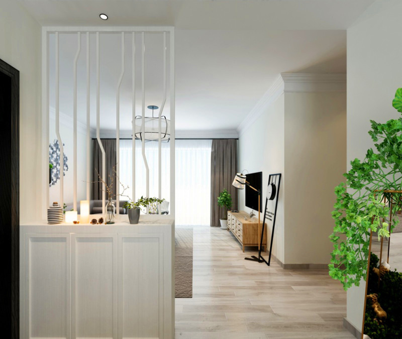 玄關處的個性設計和綠植互相搭配,讓人仿佛闖入了一片青翠的森林之中,很放松。